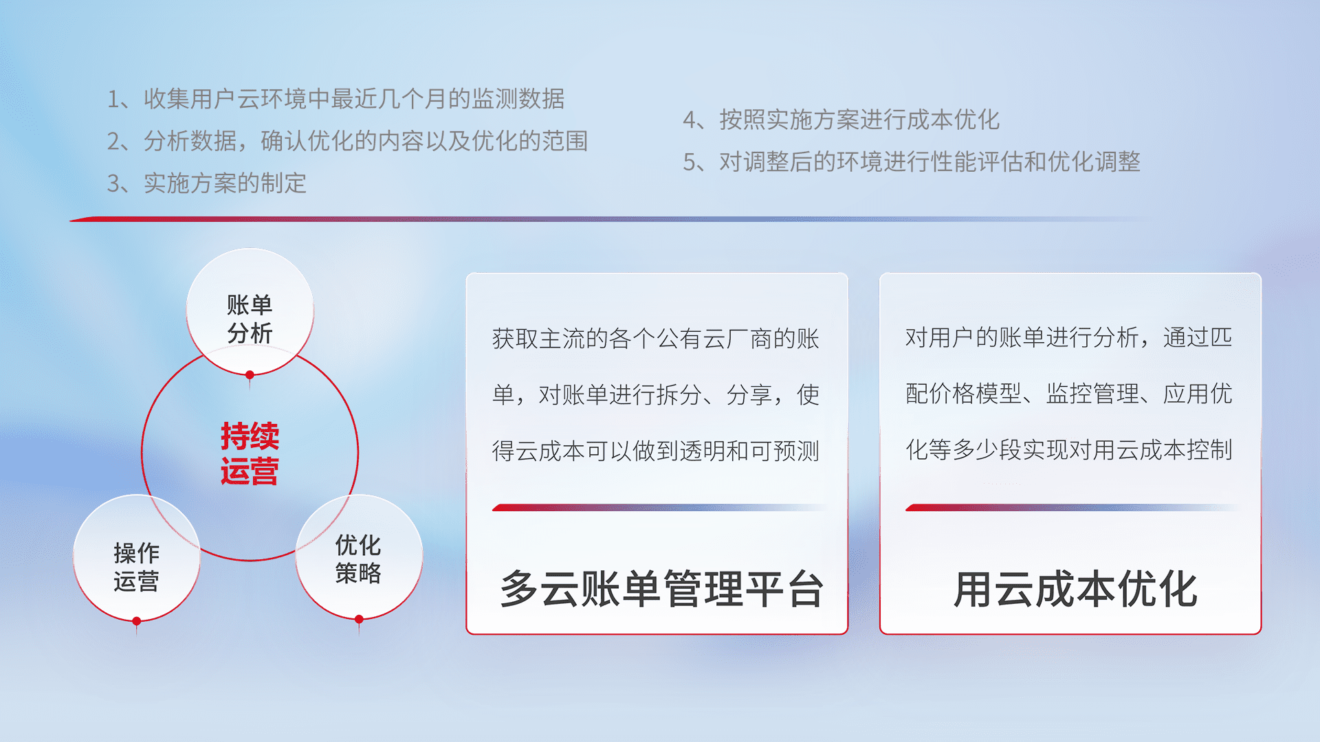 监控业务系统资源开销,,,,对资源的消耗精确计量,,,,实现费用的透明化管理,,,,不断提升资源使用率,,调整资源购买方式,,,,降低资源费用成本,,,,用云成本可预测、、、、用云费用可优化,,云资源配额有据可依。。